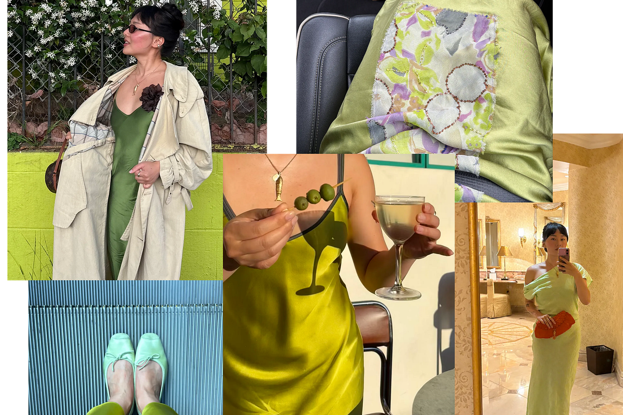 + a pair of pale green silk ballet flats i bought on the spot.