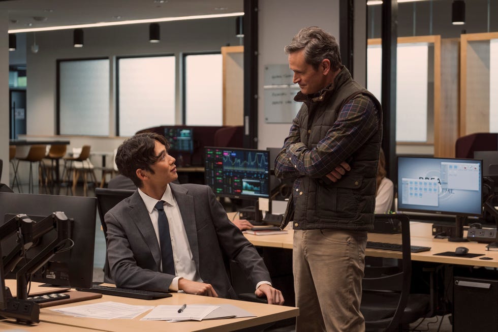 But now that Season 3 includes more scenes at Adam’s workplace, Breaker Capital, we get a better glimpse at his office fashion. He wears the classic finance bro vest, which signals his high position as (managing partner??? co-founder?? not exactly sure), while the analysts wear suits and ties.