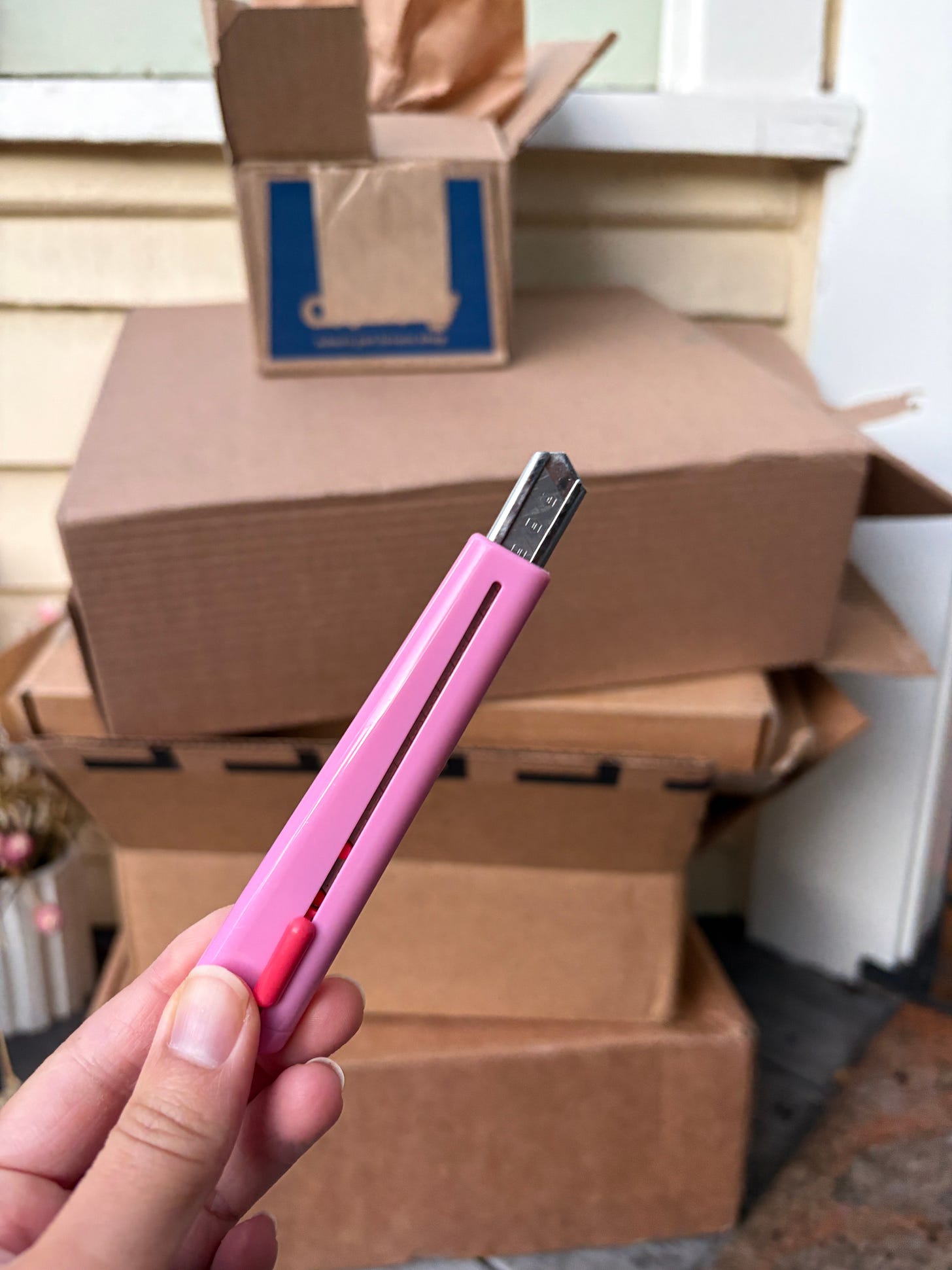 I set aside 20ish minutes and bust out my mini pink box cutter to gaslight myself into thinking this is a fun, cutesy task. It feels like a huge achievement after everything’s been cut up and tucked nicely into the recycling bin in a space-efficient way. It makes me feel like a really good citizen.