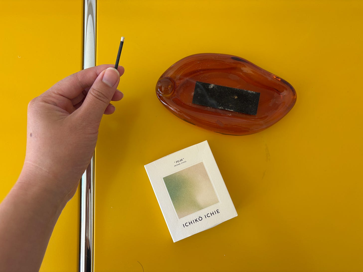 I don’t like all incense. Sometimes I go to a natural wine bar or fancy “concept store” and I get a massive headache from whatever incense they’re burning. Scent is very personal! Luckily, my partner and I both love the pear scent from Ichiko Ichie, a Japanese incense brand that we stumbled upon in Osaka a few years ago.
