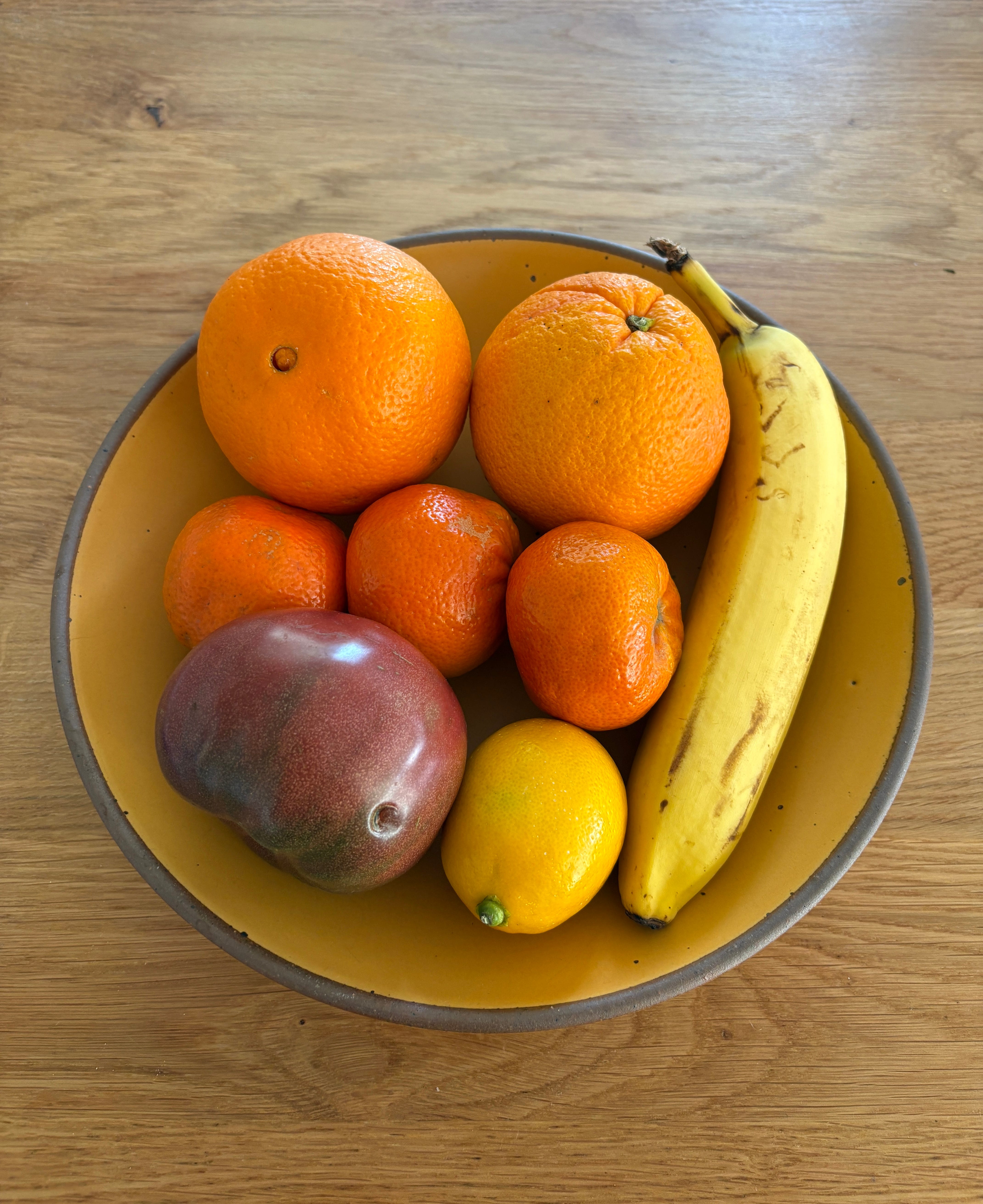 If the kitchen is the heart of the home, then the fruit bowl is its heart of hearts. Every week or so, I pick out everything that has gone bad (a moldy lemon is the usual culprit), compost it, wash the fruit bowl, and arrange the rest in a satisfying color gradient. Tbh it could use some limes for a splash of green!