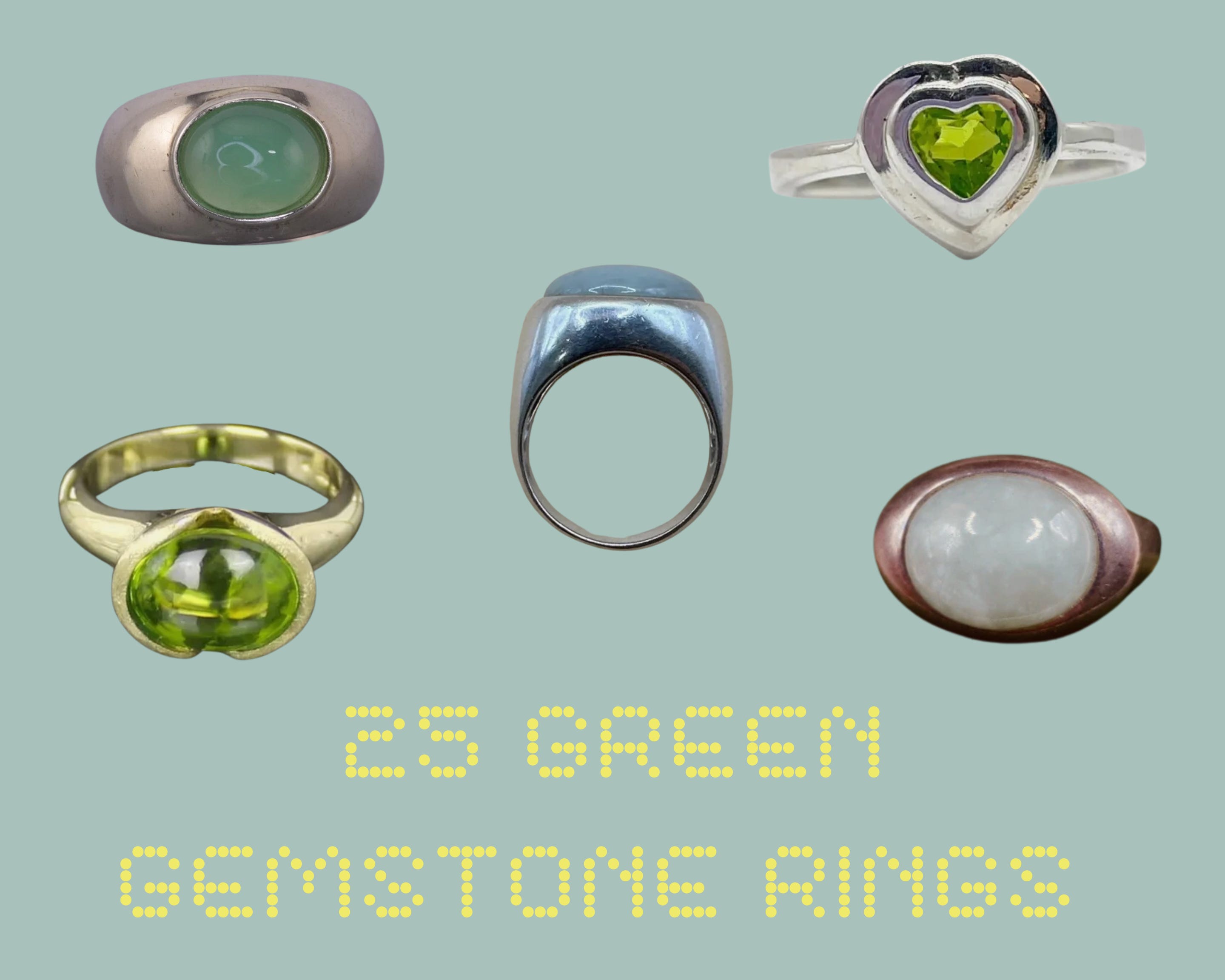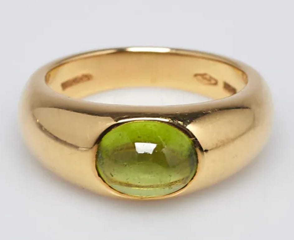 Below the fold for paid readers: 25 secondhand jewelry pieces inspired by my green ring stacks. Lots of green gemstones, cabochon rings, and legume-inspired shapes.
