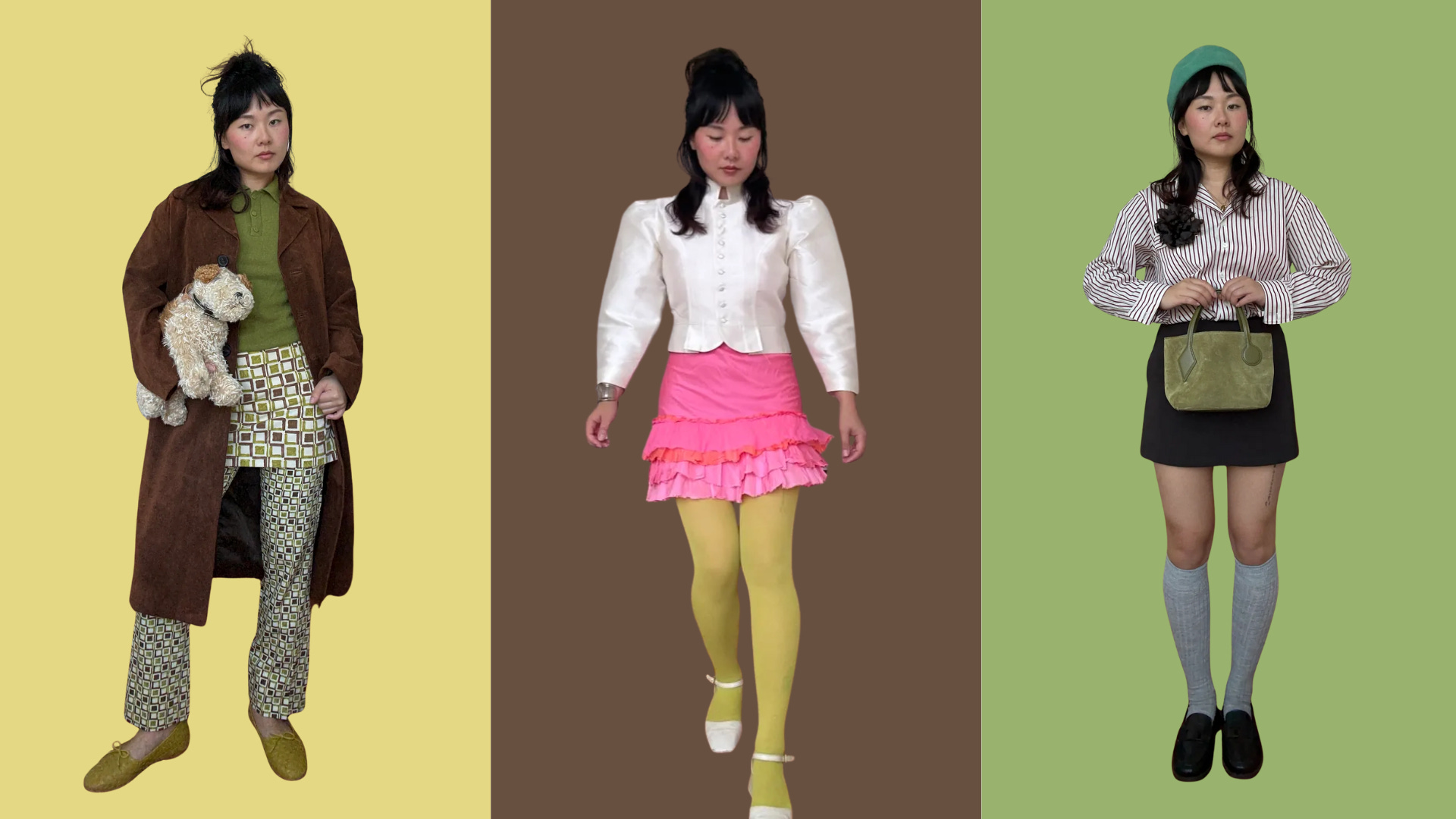 Like, this outfit would be just fine if it were only the button down, skirt and loafers. It’s the olives and cheese. But by piling on the knee socks, the brownie scout beret, the floral brooch, the quirked-up bag…suddenly it’s a fancy charcuterie board with preserved FIGS and smoked TROUT and MARCONA almonds.