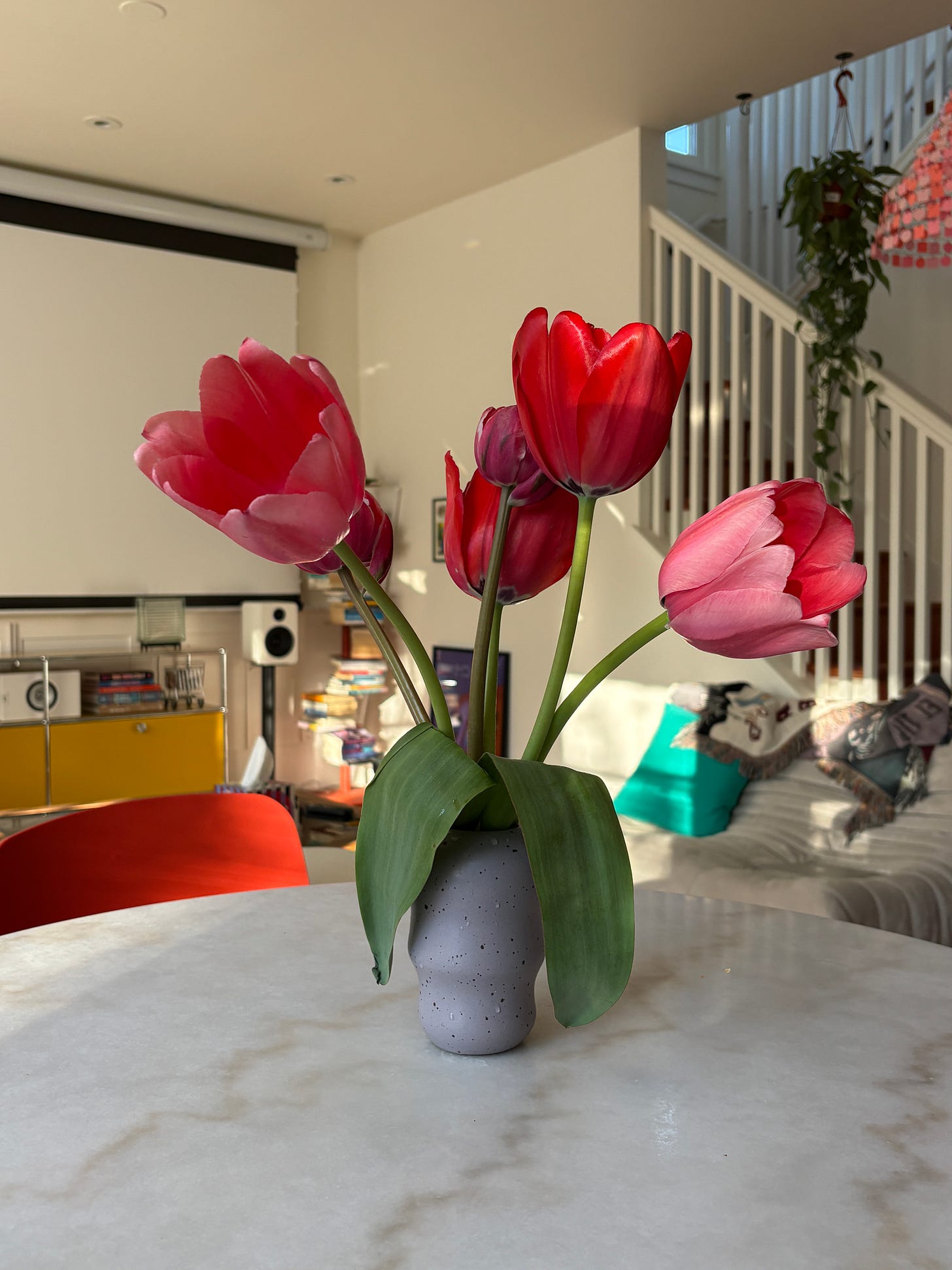 9am: Have breakfast with my mediocre homemade matcha and admire the blooming tulips I got from Monterey Market.