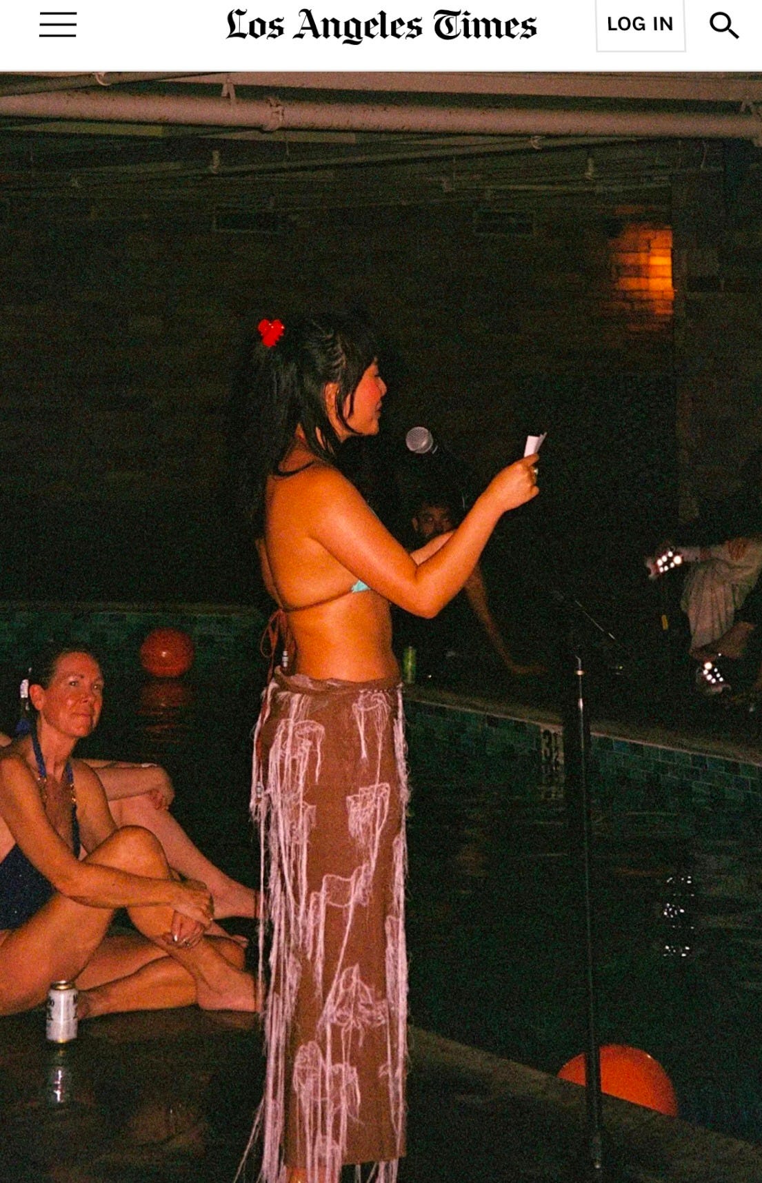 I scuttled back to my room, chugged some scammy bottled alkaline water, sent a voice memo to my sister, put on my Monchichi pajama tee, and journaled. Mostly about how I felt nervous to read an essay in front of 200 people in a bikini top tomorrow. Me to me:
