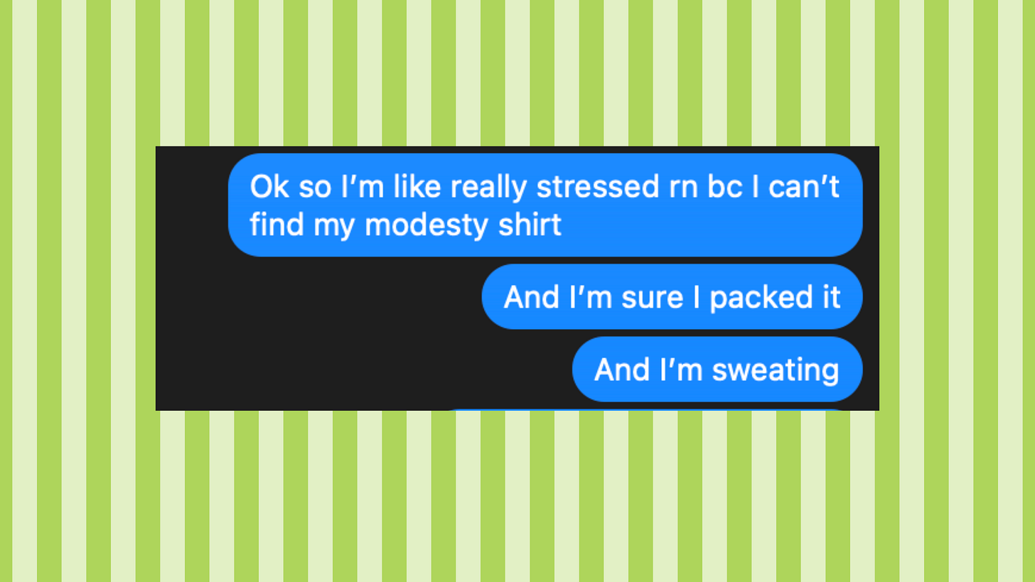 The modesty shirt is essential because while it might not be your favorite/most interesting piece to wear, there will be a highly specific use case where you’re gonna wish you had it: