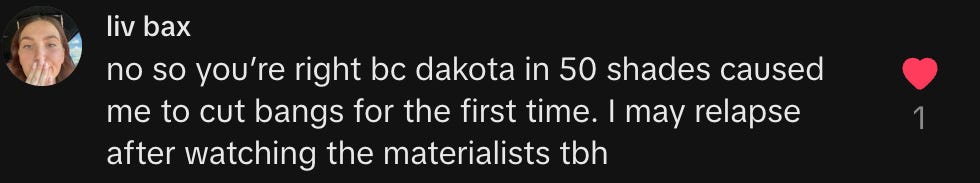 The timing of this newsletter intentionally coincides with the release of Materialists. I AM SO EXCITED FOR THIS MOVIE. I loved Celine Song’s Past Lives, so I’m going into Materialists with high expectations.