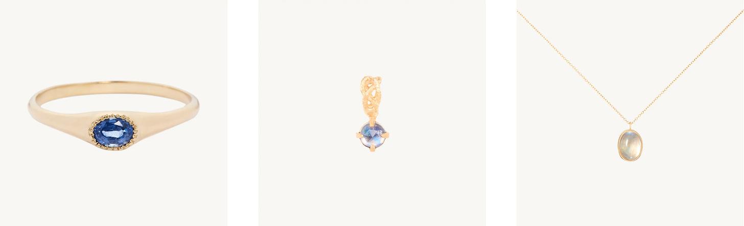 A moonstone braided charm reminds me of Elizabeth in her long pale blue nightgown.
