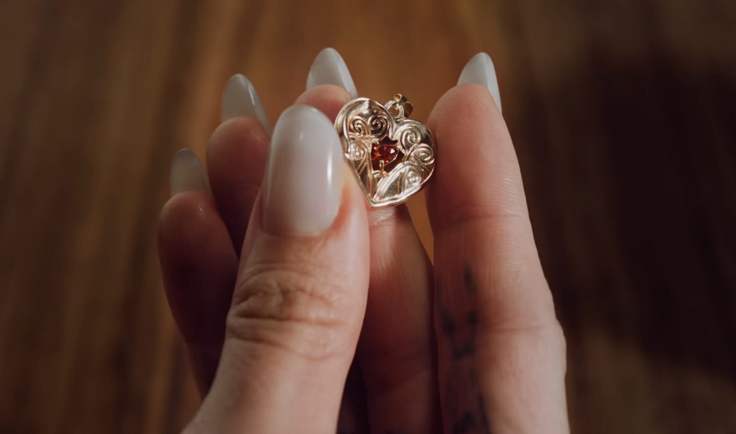 I would add Rosalía’s goth-pop Berghain music video to that list, which features a gold heart-shaped locket. Lockets evoke a sense of drama because they function as devices of concealment.