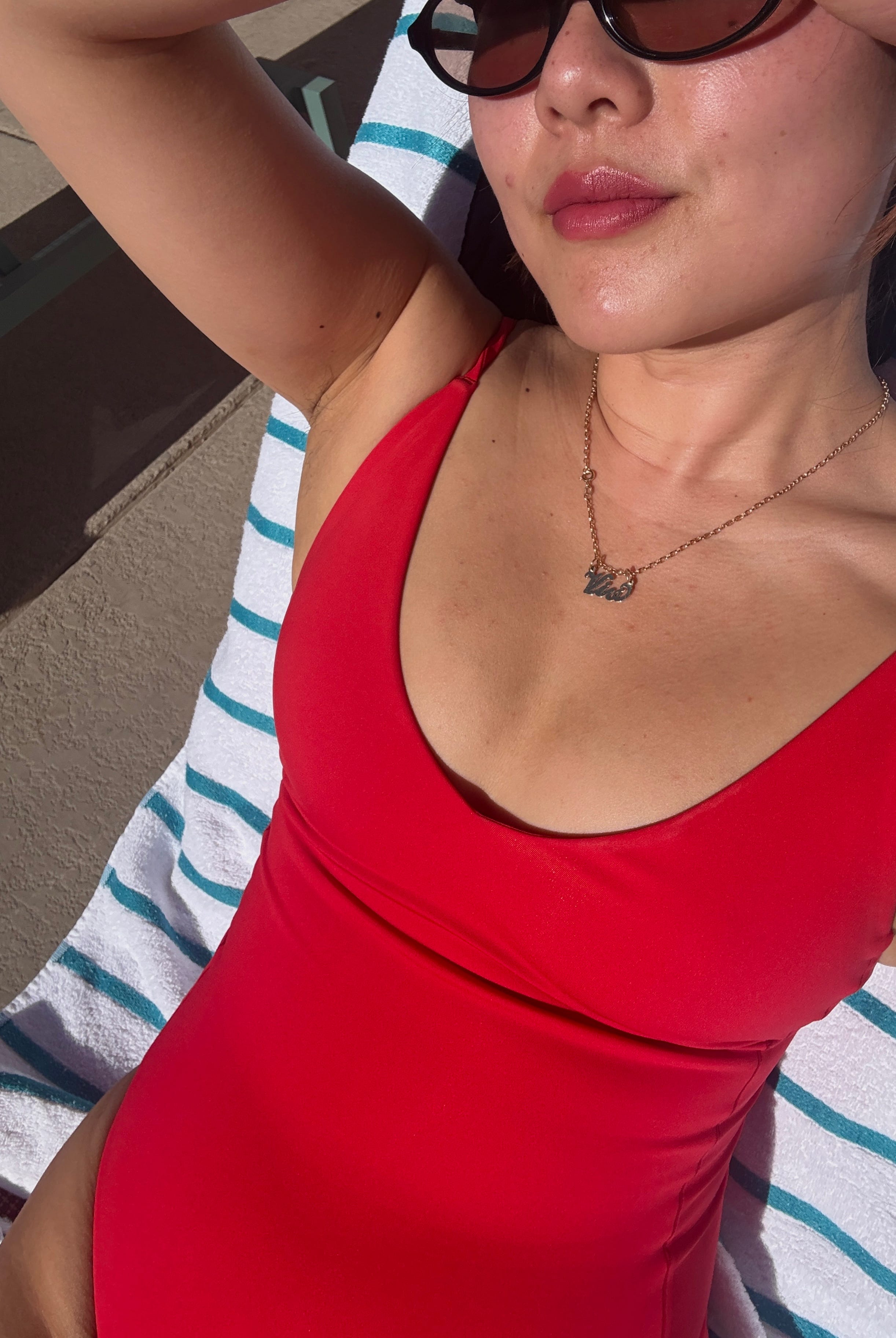 The chili red color is so refreshing. I like how it complements my skin tone and the southwestern landscape. If you’re looking for a summer swimsuit, give this one a try.