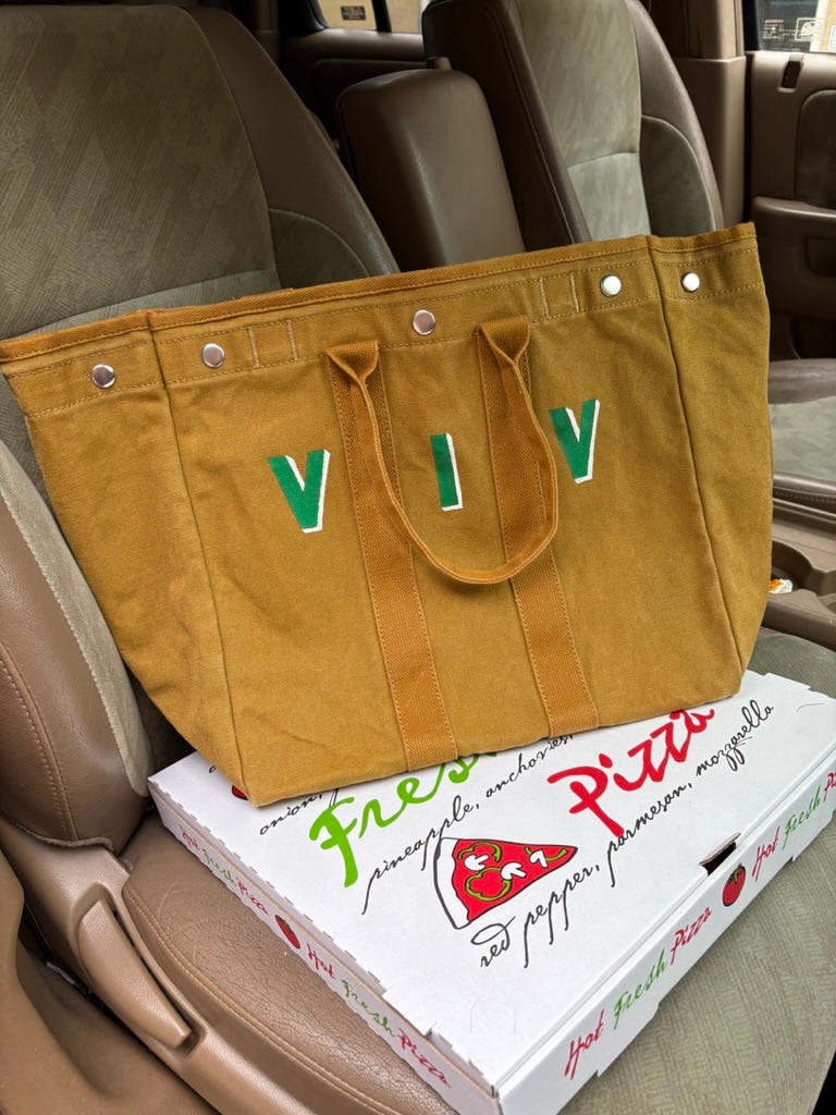 On Thursday, I decided to treat myself to a nice solo lunch out. Waffled between Ebiko (for the torched salmon nigiri) and Rose Pizzeria. Went with Rose because I wanted to actually sit down and eat something hot. When I bit into the first slice of pepperoni basil pizza, it was just what I needed. I think we should normalize ordering a pizza for solo lunch and bringing back leftovers in a big box. As I was loading my car, I noticed how the kelly green letters on my Alex Mill canvas tote (gifted) looked against the food court vibe graphic design of the pizza box. When they asked me which colorway I liked, I tried to pick the most Molehill-esque combination available.