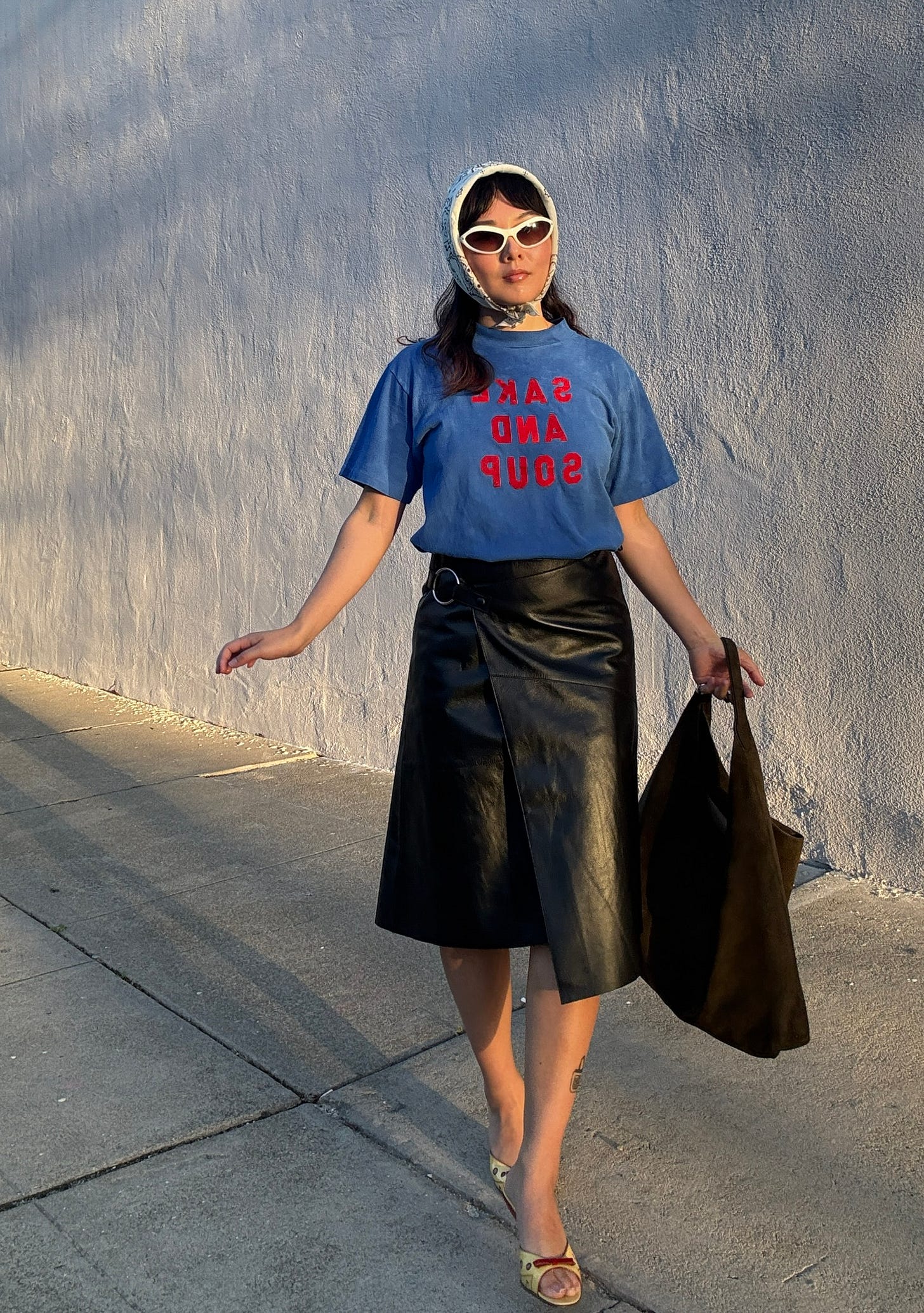 I found this red-on-true-blue vintage Hanes tee on eBay and hit ābuyā without hesitation, because Iāve never seen such a charming phrase on a tee. Sake and soup is so specific. Like yes, how did you know those were my winter interests?