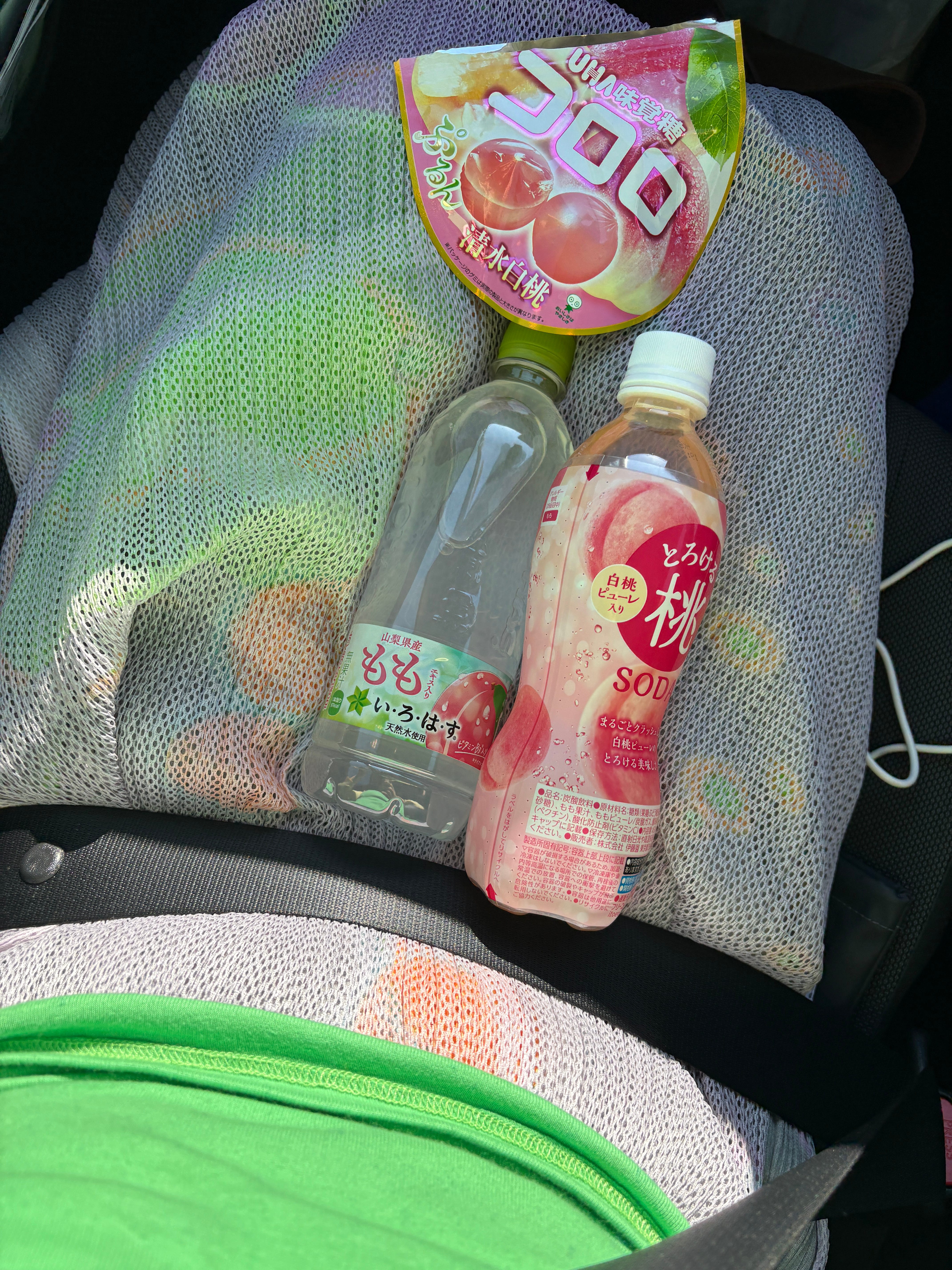 And I wore it on the long drive to Fukuoka, cradling a trio of peach-flavored provisions in my lap.
