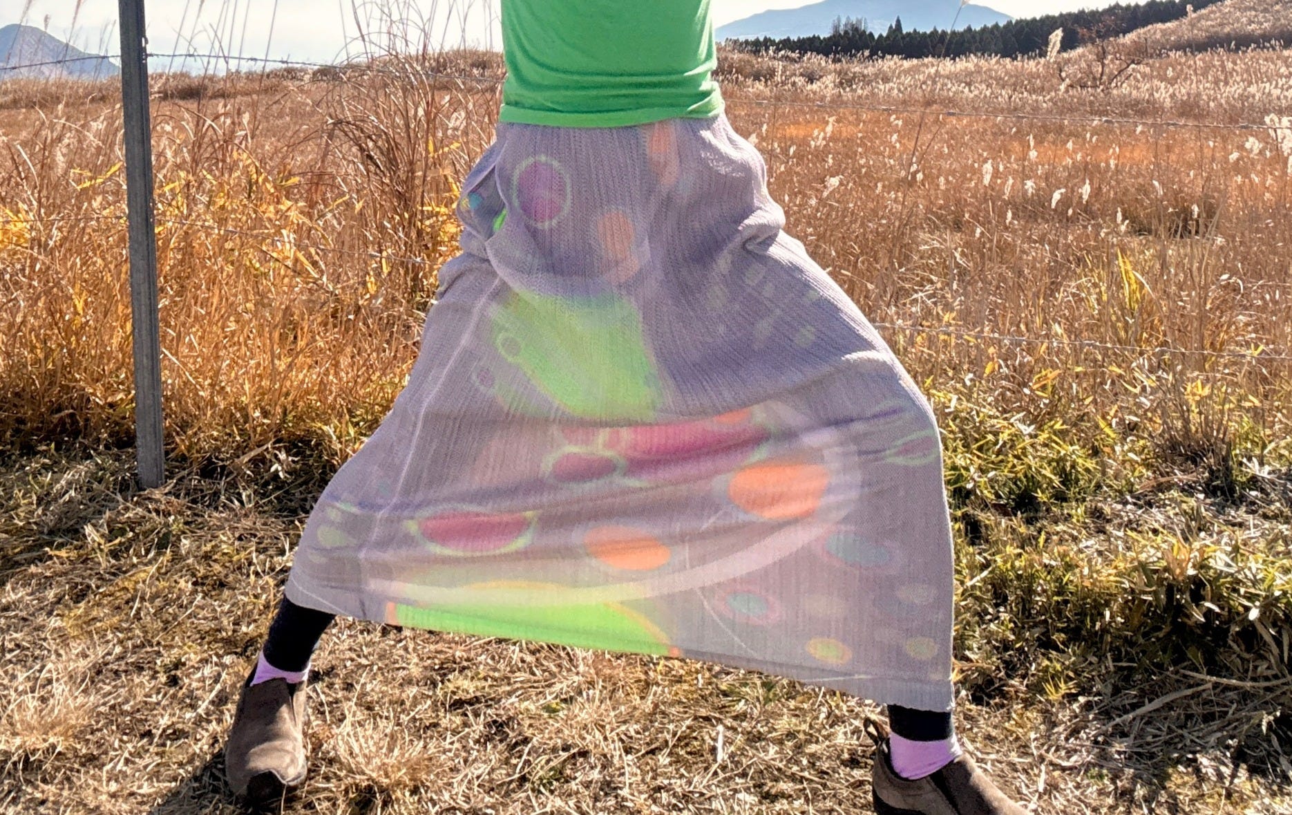 This particular skirt stands out as a top vintage score of 2025, and it was all thanks to Flora, a UK-based Molehill reader who helped me order it off Vinted! <3 The blurred effect of the colorful bubbles, the pale purple, the peek of highlighter green ruffles at the bottom—I just really, really love this skirt.
