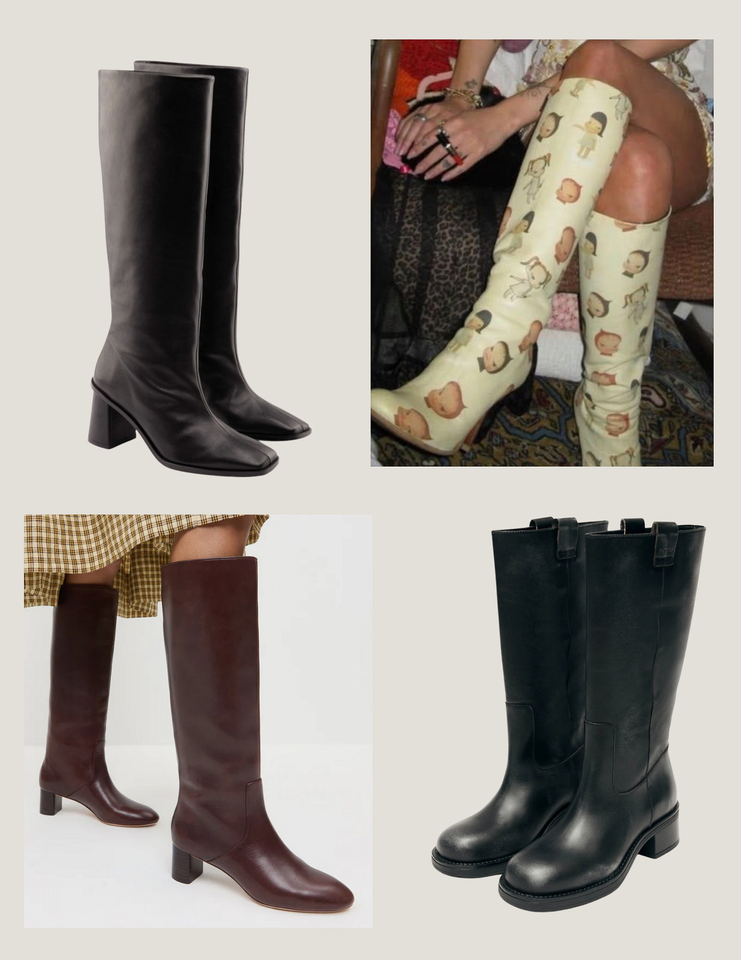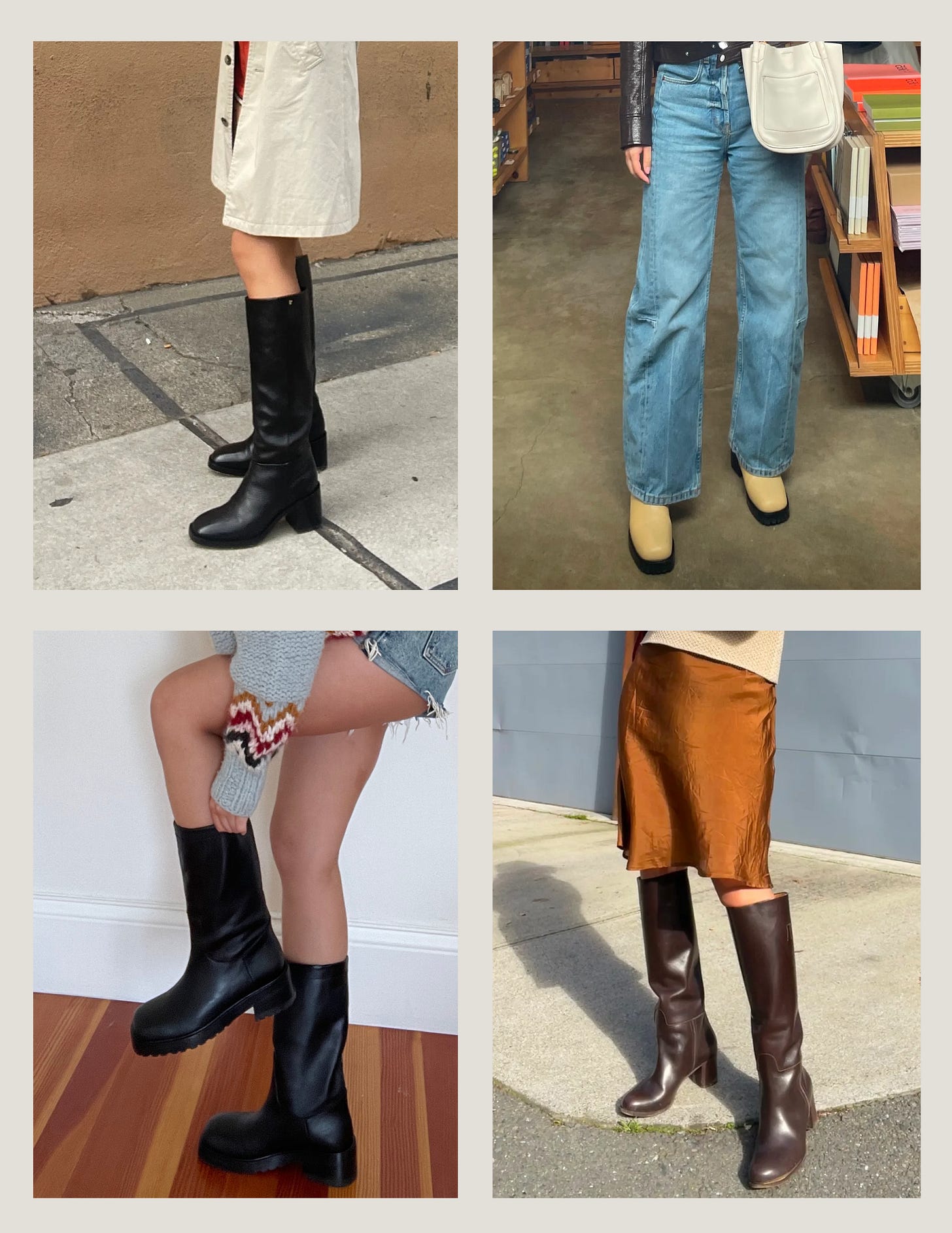 MNZ Belmont Boots: this is an older style. I have them in both black and banana yellow, which give extremely different vibes. Black is more edgy biker, yellow is more 70s bohemian. These hit at the mid-calf and are the best to wear with relaxed jeans. I’ve never paid full price for these, got mine on SSENSE sale and Depop.