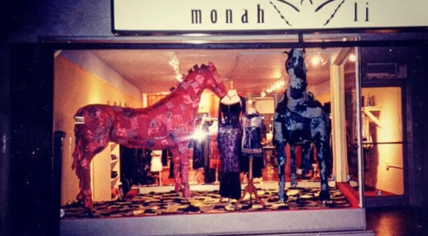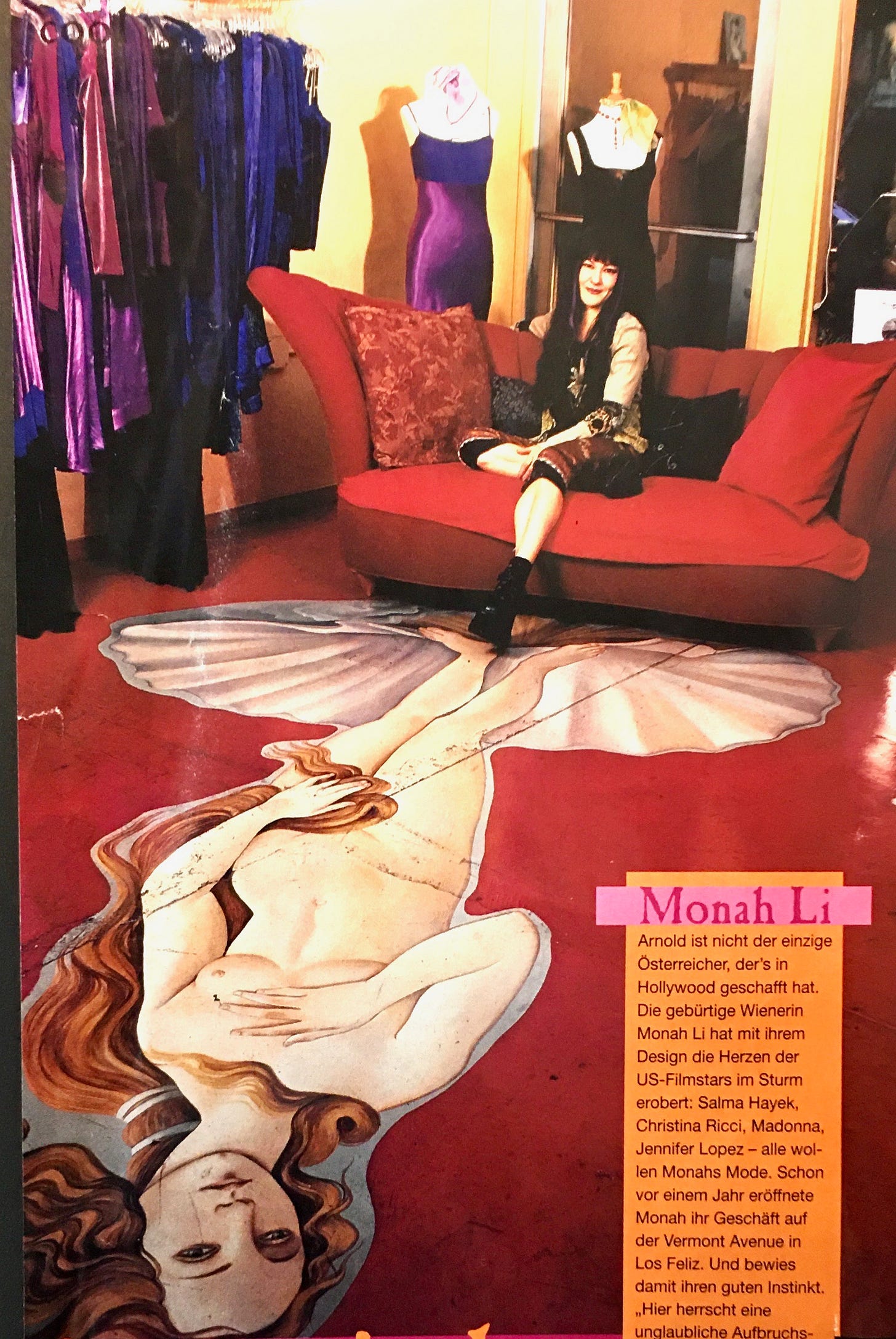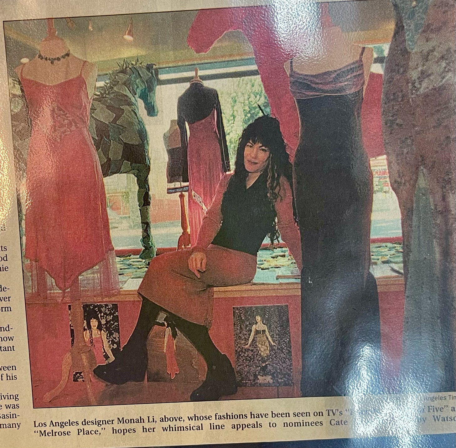 “It used to be that any time you wanted to rub elbows with a celebrity, it was as easy as breezing into the funky little boutique owned by Monah Li on Vermont Avenue in Los Angeles, just off Hollywood Boulevard. Anyone and everyone was there, where she succeeded brilliantly in a part of town better known for its coffeehouses.”1