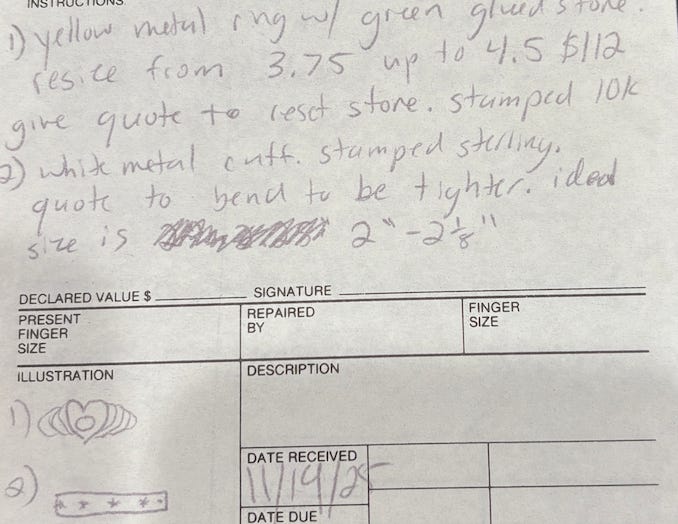 Picking up jewelry alterations