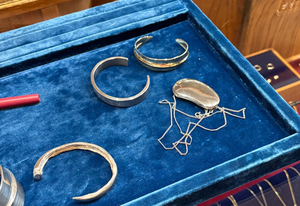 This was the most interesting errand of the week. In November, I brought three items to Aster Jewelers to get altered.