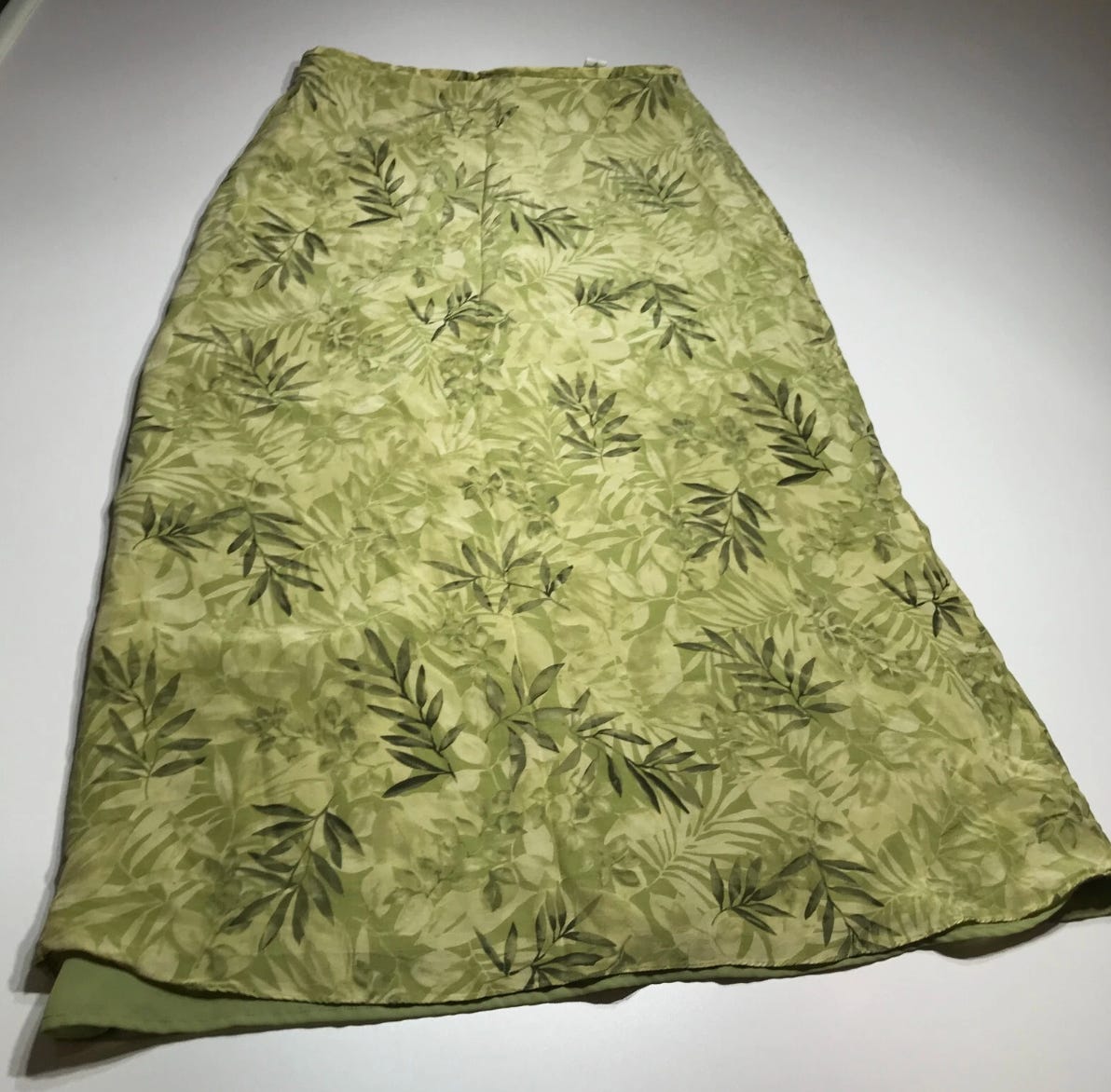 Josephine Chaus Silk Green Leaf Skirt —Size 12, $20. Excellent price for vintage silk, would look adorable with a simple white tank top and straw hat.